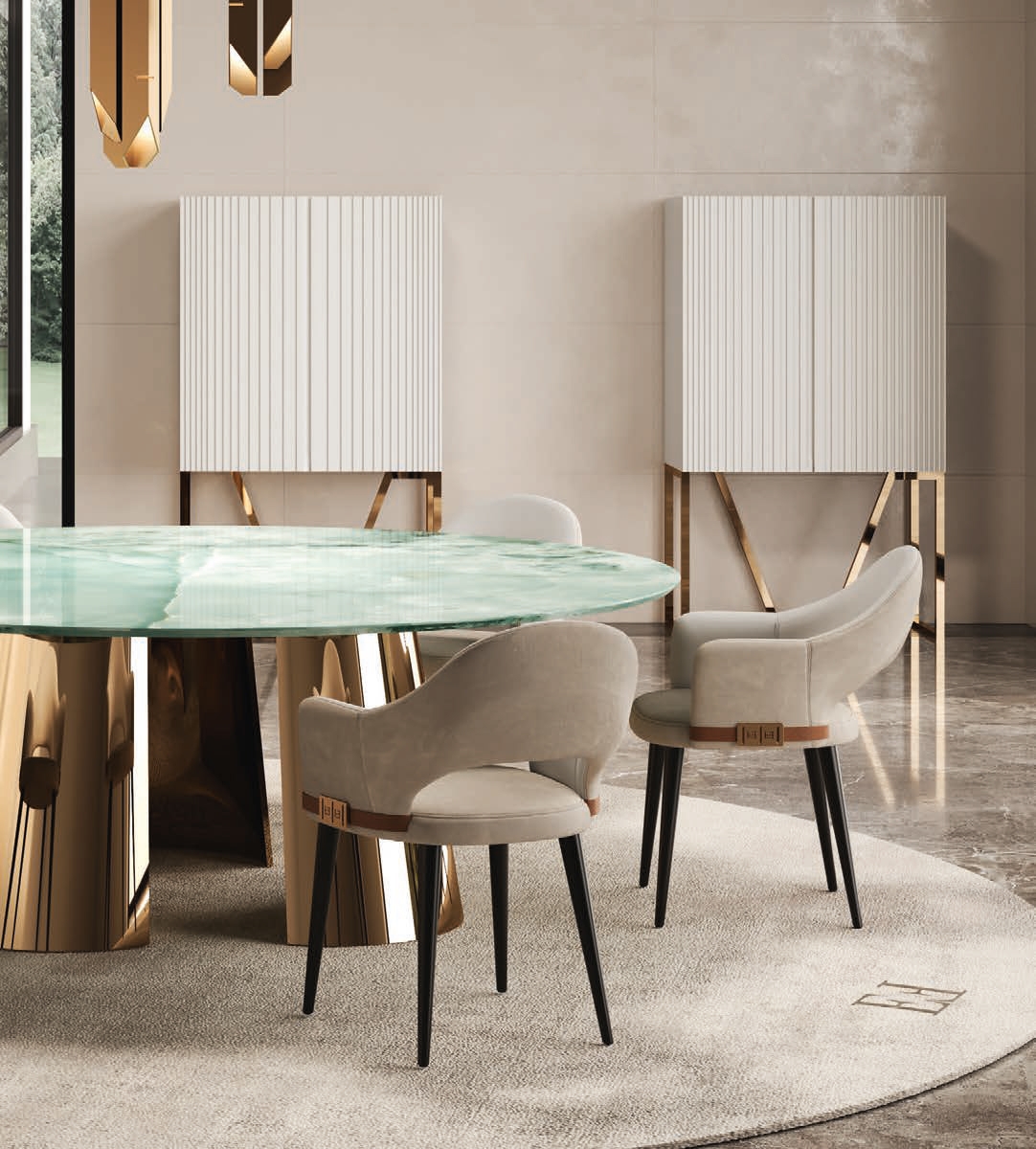 Wspaniale komponuje się ze stołem z tej samej kolekcji, tworząc spójną i stylową aranżację przestrzeni. Możliwość dokupienia TU.