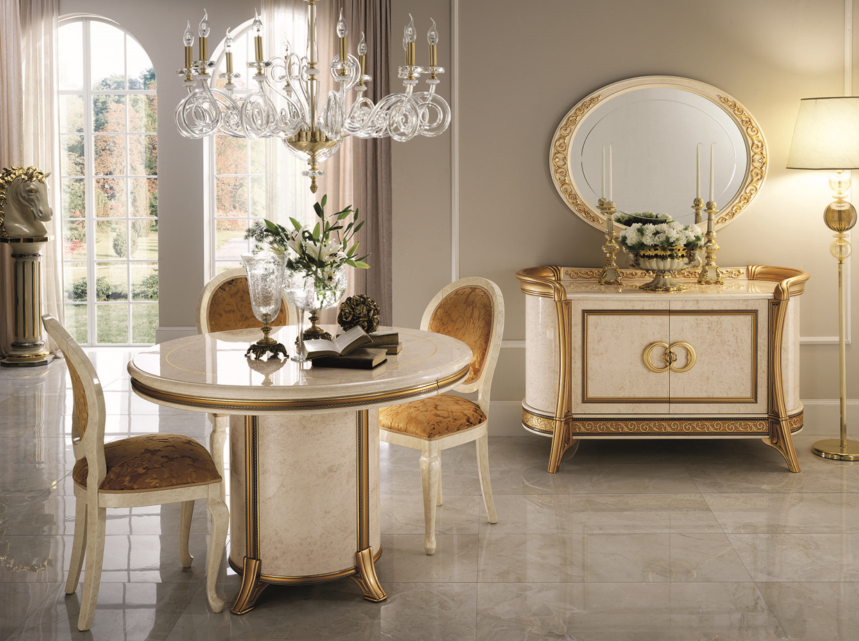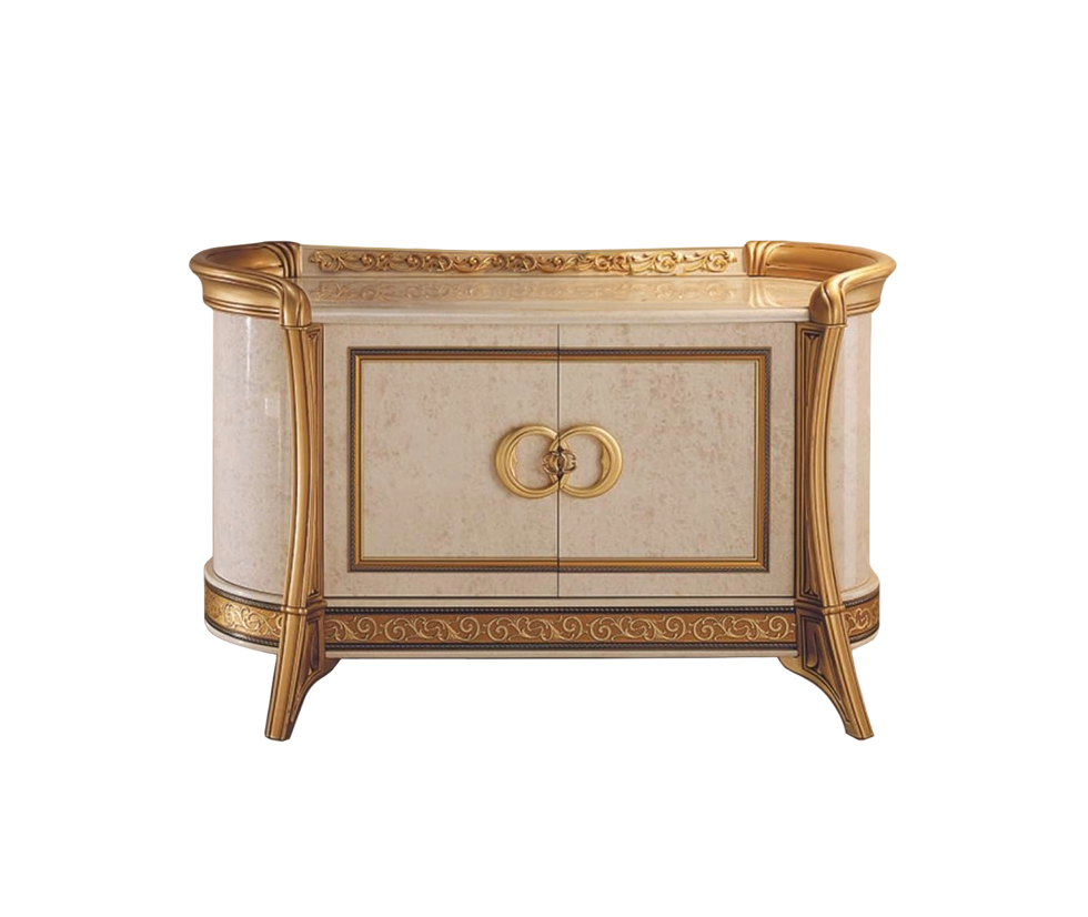 Bufet z kolekcji Arr Melodia to oszałamiający mebel, który emanuje elegancją i wyrafinowaniem. Wykonany z wysokiej jakości materiału w kolorze kości słoniowej i ozdobiony wyszukanymi złoconymi dekoracjami, ten bufet jest zarówno estetyczny, jak i praktyczny.