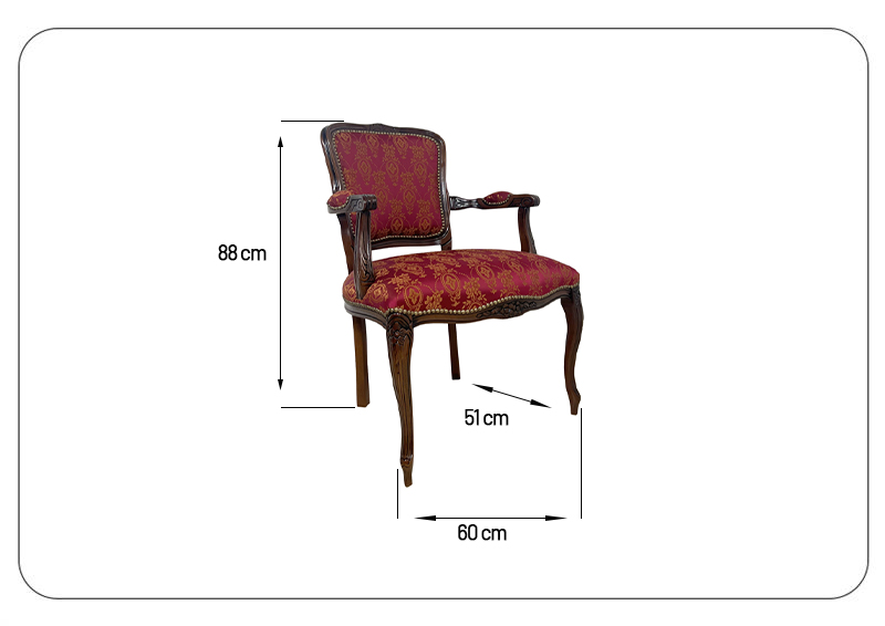 Jego konstrukcja wykonana jest z litego drewna bukowego, co zapewnia wyjątkową trwałość i stabilność przez długie lata użytkowania. Tapicerka fotela wykonana została nowoczesną metodą, która obejmuje warstwę gąbki poliuretanowej, pasy tapicerskie, płótno (surówka) oraz tkaninę dekoracyjną.