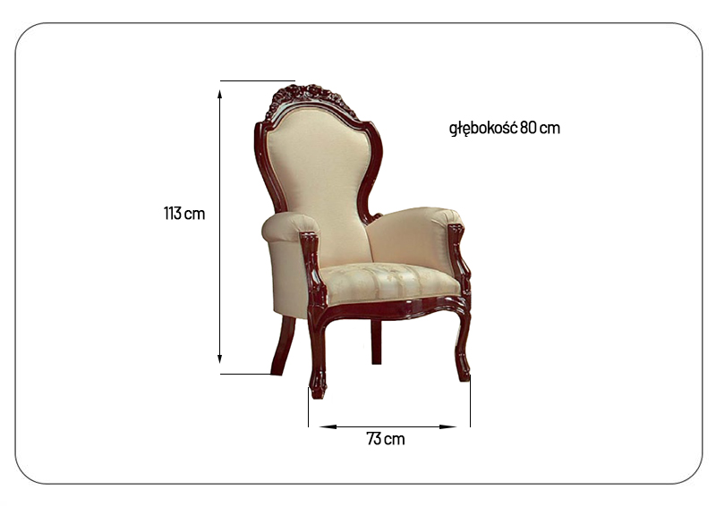 Wykonany z litego drewna bukowego, jego solidna konstrukcja zapewnia długowieczność i stabilność, co czyni go idealnym wyborem do każdego wnętrza. Tapicerka została wykonana nowoczesną metodą, która łączy gąbkę poliuretanową, pasy tapicerskie, płótno (surówkę) oraz tkaninę dekoracyjną, co zapewnia komfort oraz estetyczny wygląd.