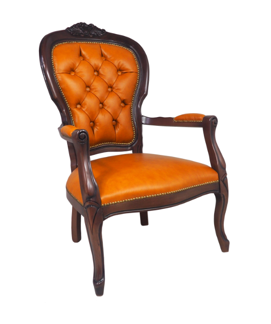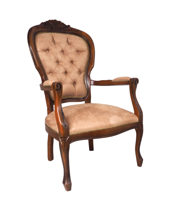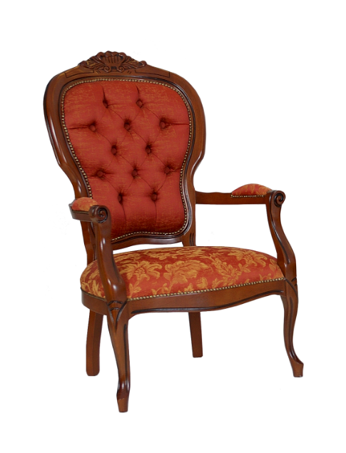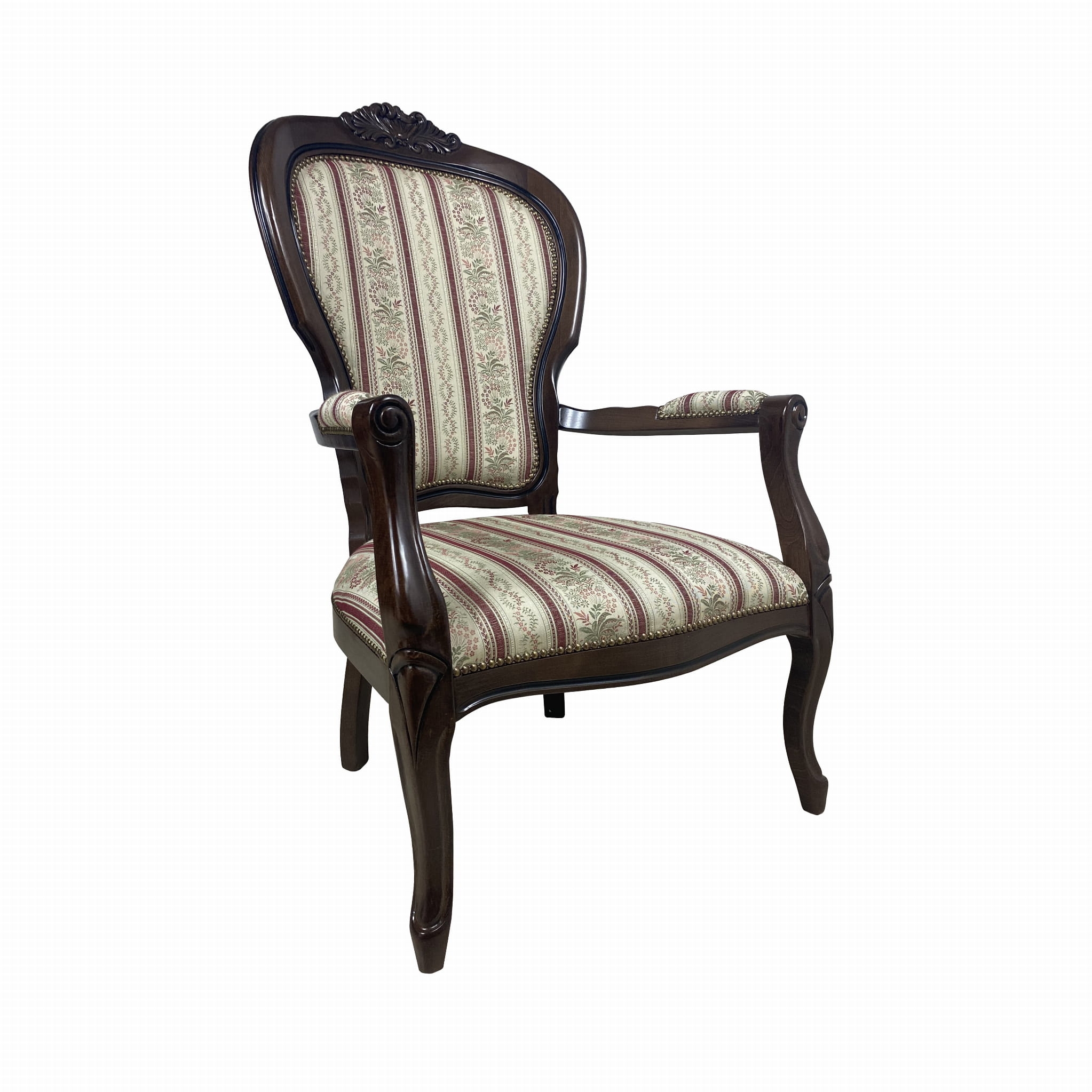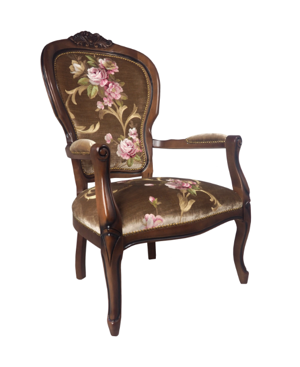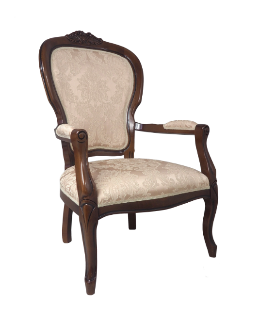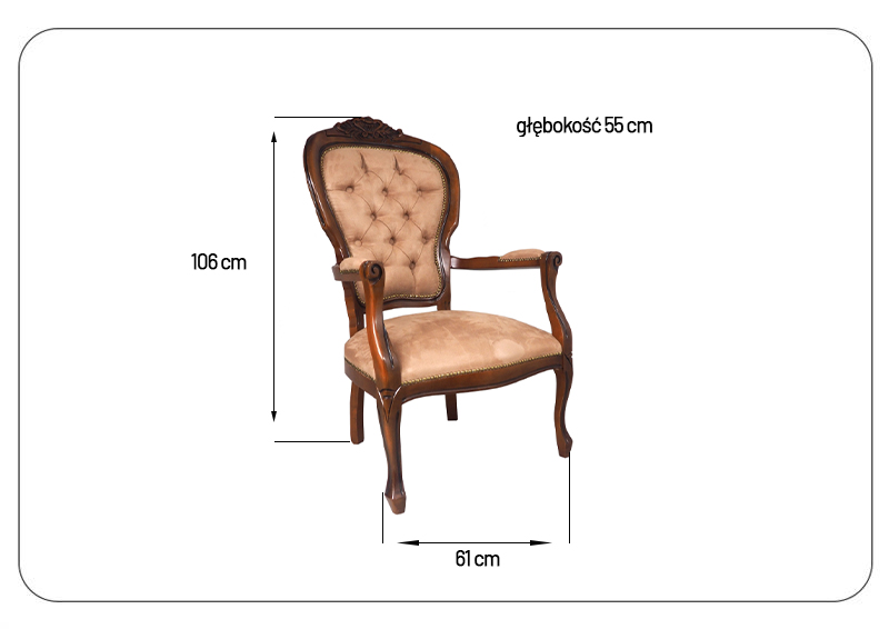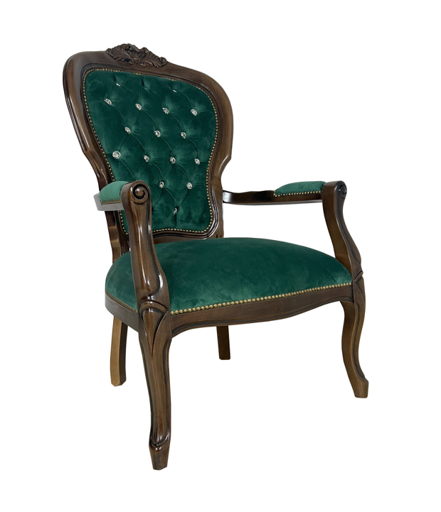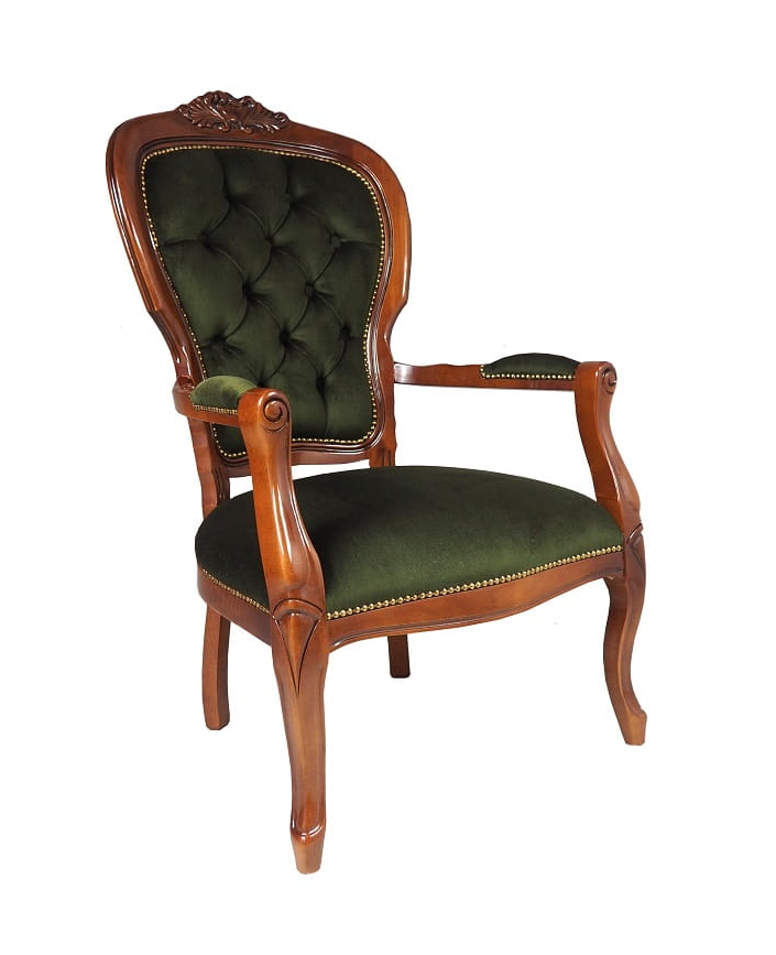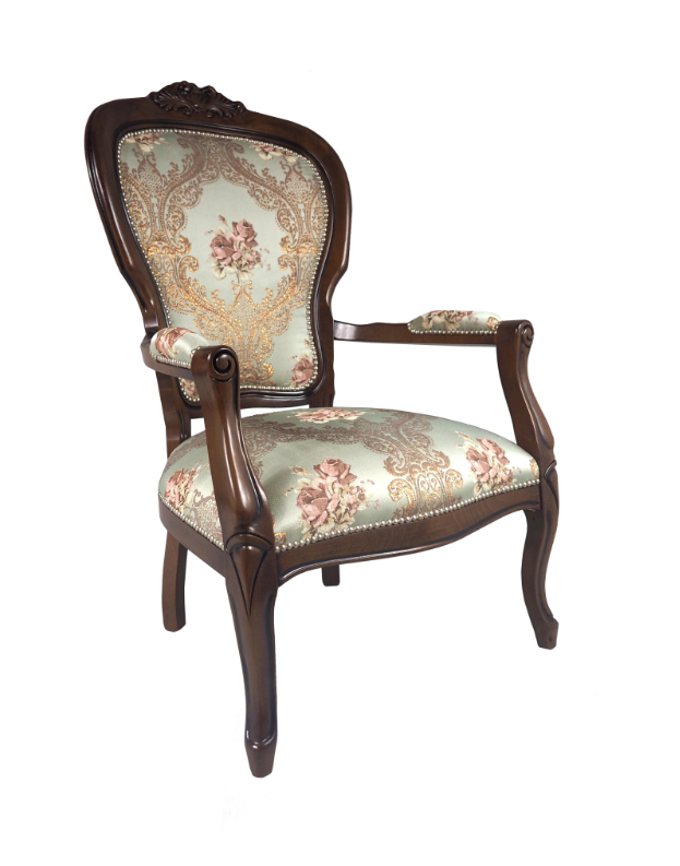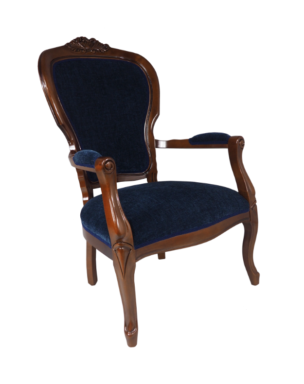 Wykonany z litego drewna bukowego, fotel charakteryzuje się trwałością i stabilnością, gwarantując długowieczność i solidność. Tapicerka mebla została wykonana nowoczesną metodą, która obejmuje gąbkę poliuretanową, pasy tapicerskie, płótno (surówkę) oraz tkaninę dekoracyjną, co zapewnia wygodę, estetykę i wysoką jakość wykonania. Dzięki starannemu wykonaniu i doskonałemu designowi, fotel 636/K doskonale wpisuje się w eleganckie i klasyczne aranżacje wnętrz.