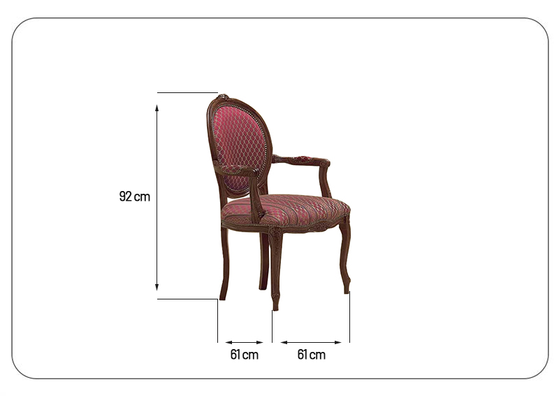 Wykonany z litego drewna bukowego, fotel zapewnia wyjątkową trwałość i stabilność, co czyni go inwestycją na lata. Jego solidna budowa i starannie dobrane materiały sprawiają, że jest nie tylko pięknym, ale i wygodnym elementem wyposażenia. Tapicerka fotela została wykonana nowoczesną metodą, łączącą gąbkę poliuretanową, pasy tapicerskie, płótno (surówka) oraz tkaninę dekoracyjną, co zapewnia zarówno komfort siedzenia, jak i estetyczny wygląd.