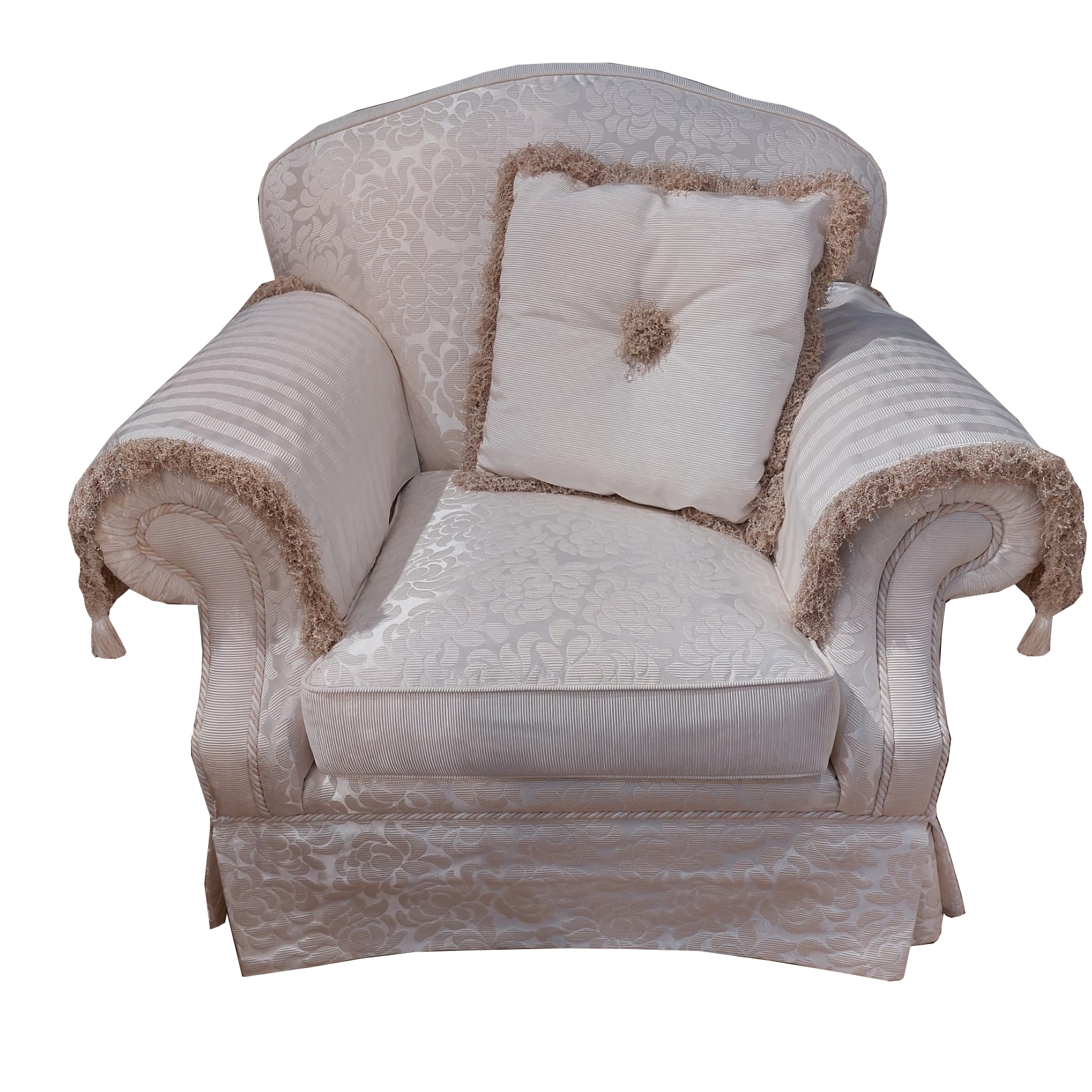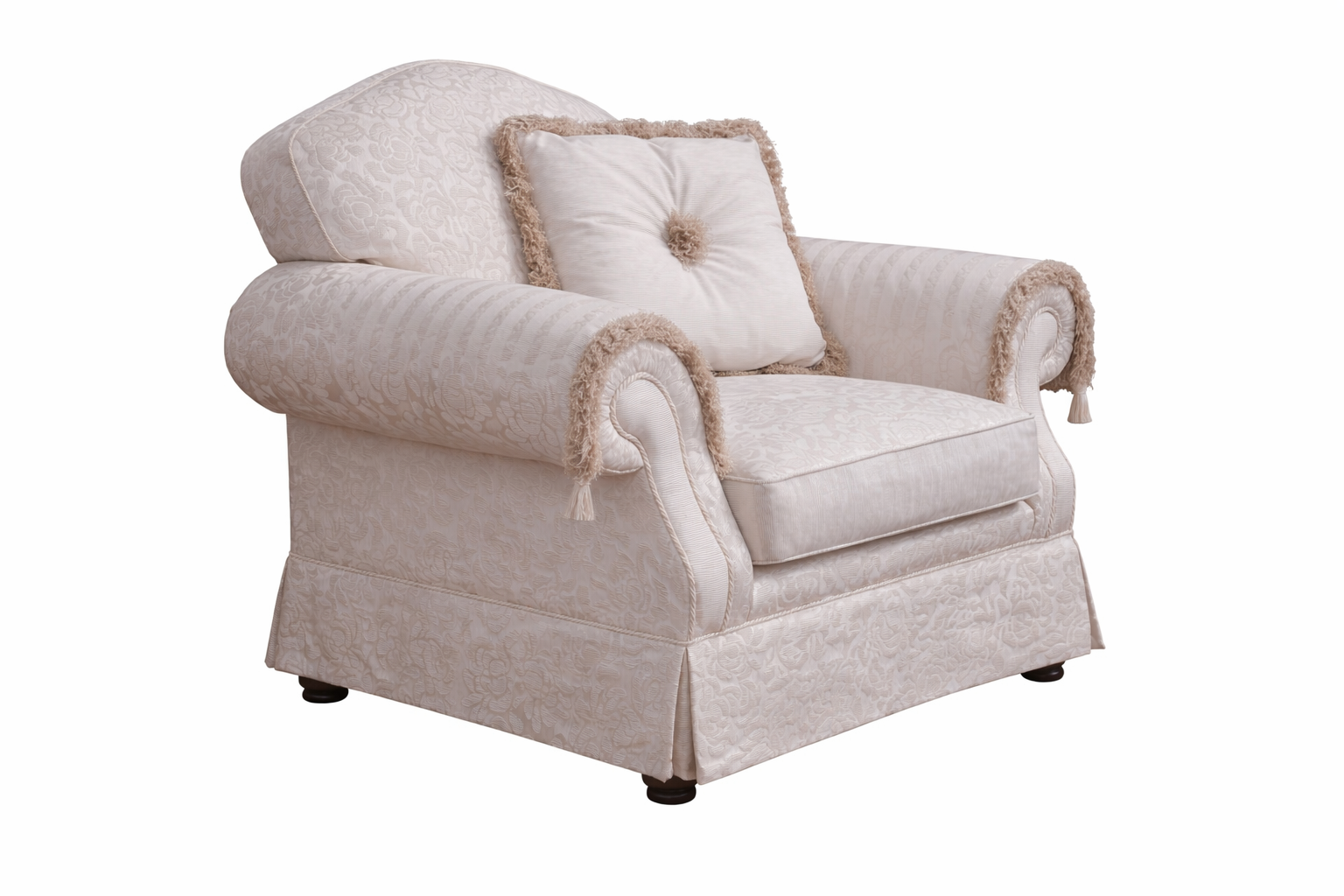 Fotel Ornella to połączenie klasycznego designu z trwałym wykonaniem, które sprawdzi się zarówno w salonie, jak i w pokoju dziennym. Stabilny stelaż z drewna oraz materiału drewnopochodnego zapewnia odpowiednią wytrzymałość i komfort użytkowania przez długi czas.