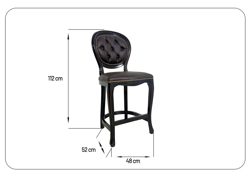 Hoker posiada siedzisko o wysokości 66 cm. Istnieje również możliwość zakupu hokera z podwyższonym siedziskiem o wysokości 76 cm (model 117/SG)