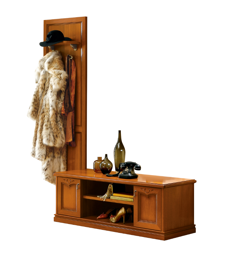 Panel jest wręcz nieodzowną częścią przedpokoju. Wyjątkowy panel szafką i wieszakami z kolekcji Nostalgia to doskonałe dopełnienie każdego przedpokoju lub holu. Dębowa kolorystyka doskonale wpisuje się w niemal każde wnętrze. Panel wyróżnia się niesamowitą funkcjonalnością.Prosty lecz klasyczny wygląd sprawia, ze panel pasuje nie tylko do pomieszczeń utrzymanych w klasycznym charakterze. Panel sprawdza się również w pomieszczeniach komercyjnych.