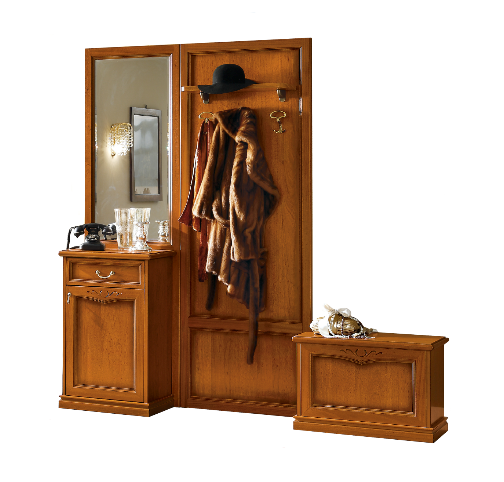 Jeden z najbardziej rozbudowanych paneli w kolekcji Nostalgia. Panel posiada aż dwie przestrzenie do przechowywania, duże lustro półkę oraz wieszaki na okrycia wierzchnie. Panel doskonale komponować się będzie z klasycznymi wnętrzami i będzie doskonałym preludium w stylowym domu.