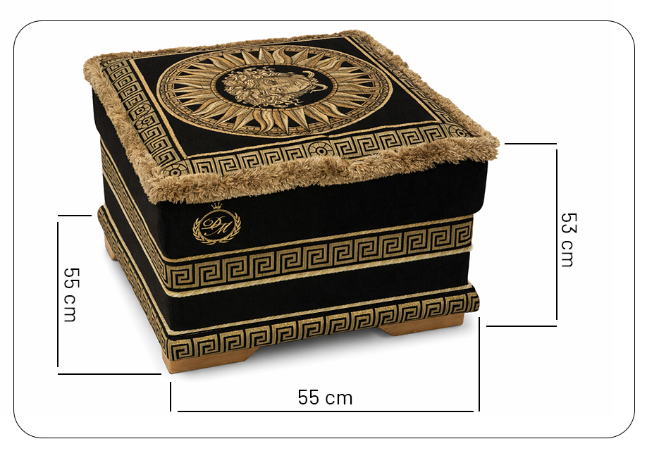 Puf z motywem Meduzy Di Emporio to elegancki i funkcjonalny dodatek do luksusowych wnętrz. Jego kompaktowa forma oraz dekoracyjny motyw Meduzy nadają mu prestiżowego charakteru, idealnie wpisującego się w aranżacje w stylu glamour, klasycznym oraz nowoczesnym luksusie.