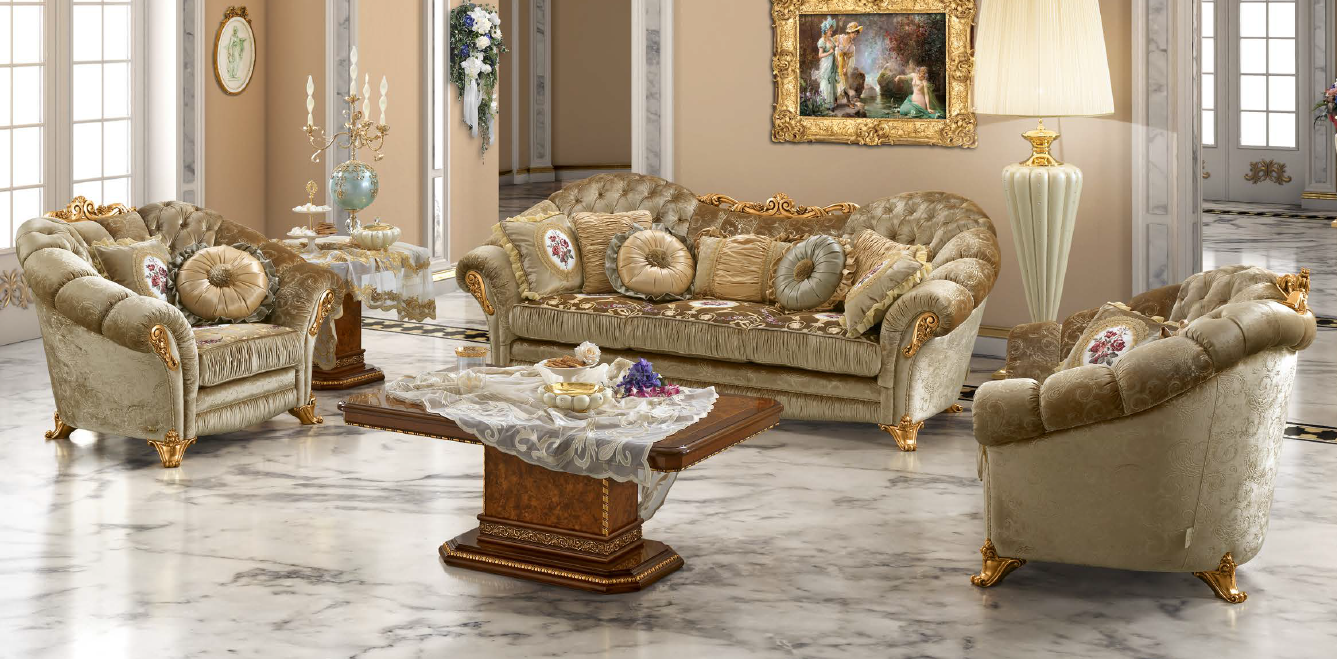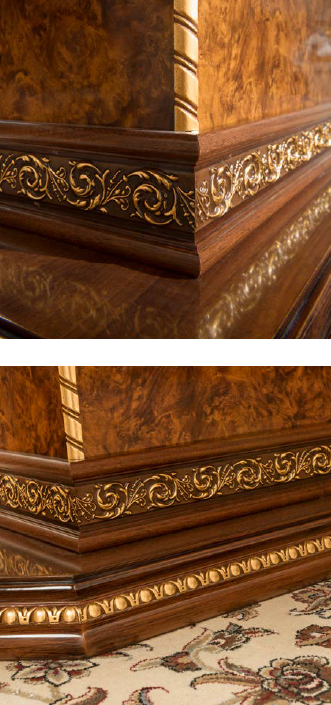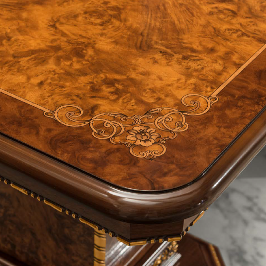 Stolik kawowy Aida Piu charakteryzuje się klasycznym stylem, który z pewnością zrobi wrażenie. Misterne detale stoliku, takie jak ozdobne rzeźby na nogach i inkrustowane złote akcenty, dodają luksusu i elegancji. Monumentalna noga kolumnowa zapewnia solidne podparcie. Aby jeszcze bardziej podkreślić jego luksusowy wygląd, stolik Aida Piu został wykonany z materiałów wysokiej jakości.