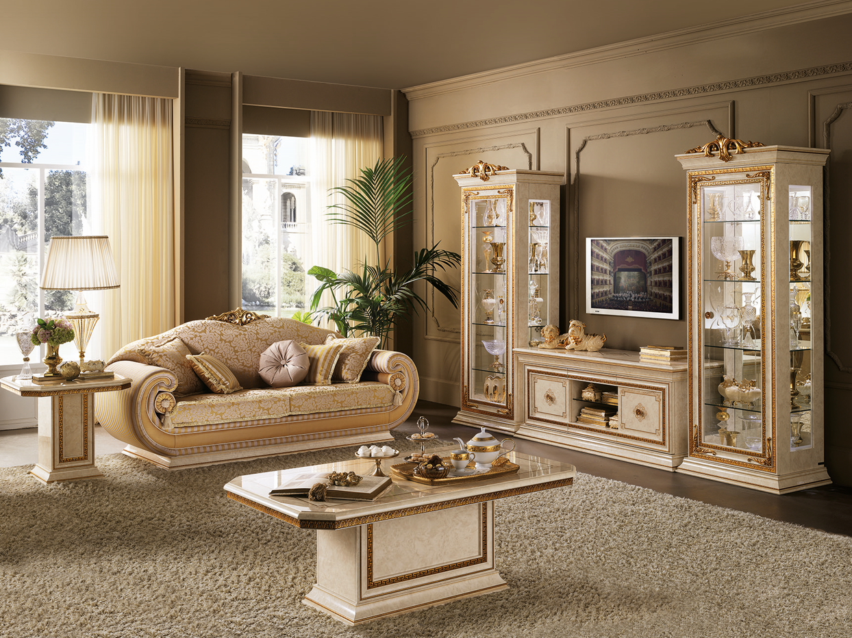 Złote zdobienia, które zdobią stolik, nadają mu wyjątkowego blasku i luksusowego charakteru. Każdy detal został starannie wykonany, co sprawia, że stolik staje się nie tylko meblem użytkowym, ale także prawdziwym dziełem sztuki.