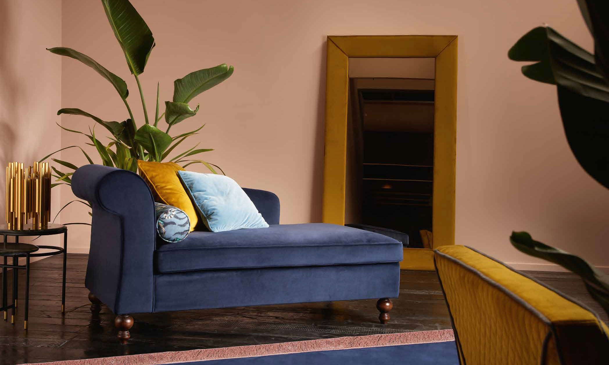 Szezlong dostępny jest w wielu wybarwieniach tkaniny do wyboru.