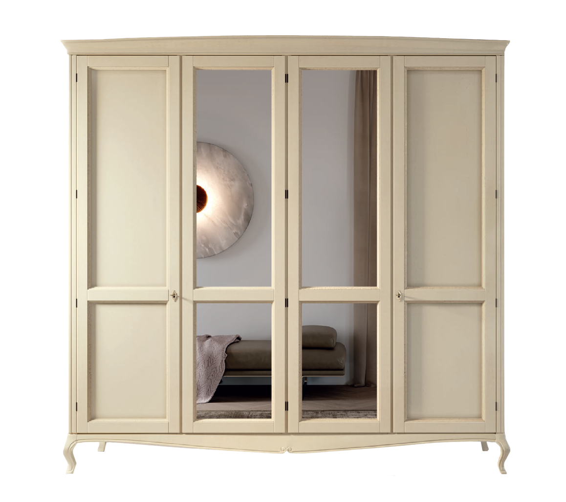 Szafa Verdi to wspaniały przykład włoskiego rzemiosła. Wykonana z wysokiej jakości materiałów i fachowej dbałości o szczegóły, ta czterodrzwiowa szafa oferuje dużo miejsca do przechowywania i praktyczne funkcje, które sprawiają, że jest niezbędna w każdej sypialni.