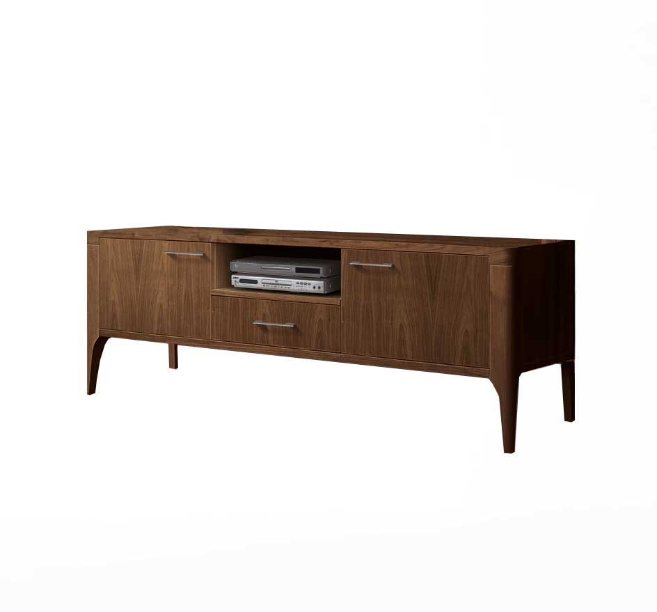 Nowoczesna szafka RTV Tar 141 na smukłych nóżkach łączy elegancki wygląd z funkcjonalnością. Wyposażona jest w dwie zamknięte szafki, jedną szufladę oraz otwartą półkę, zapewniając wygodne miejsce do przechowywania sprzętu i akcesoriów.