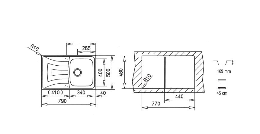 1 komora, stal: mikrotekstura, do szafek od 45 cm